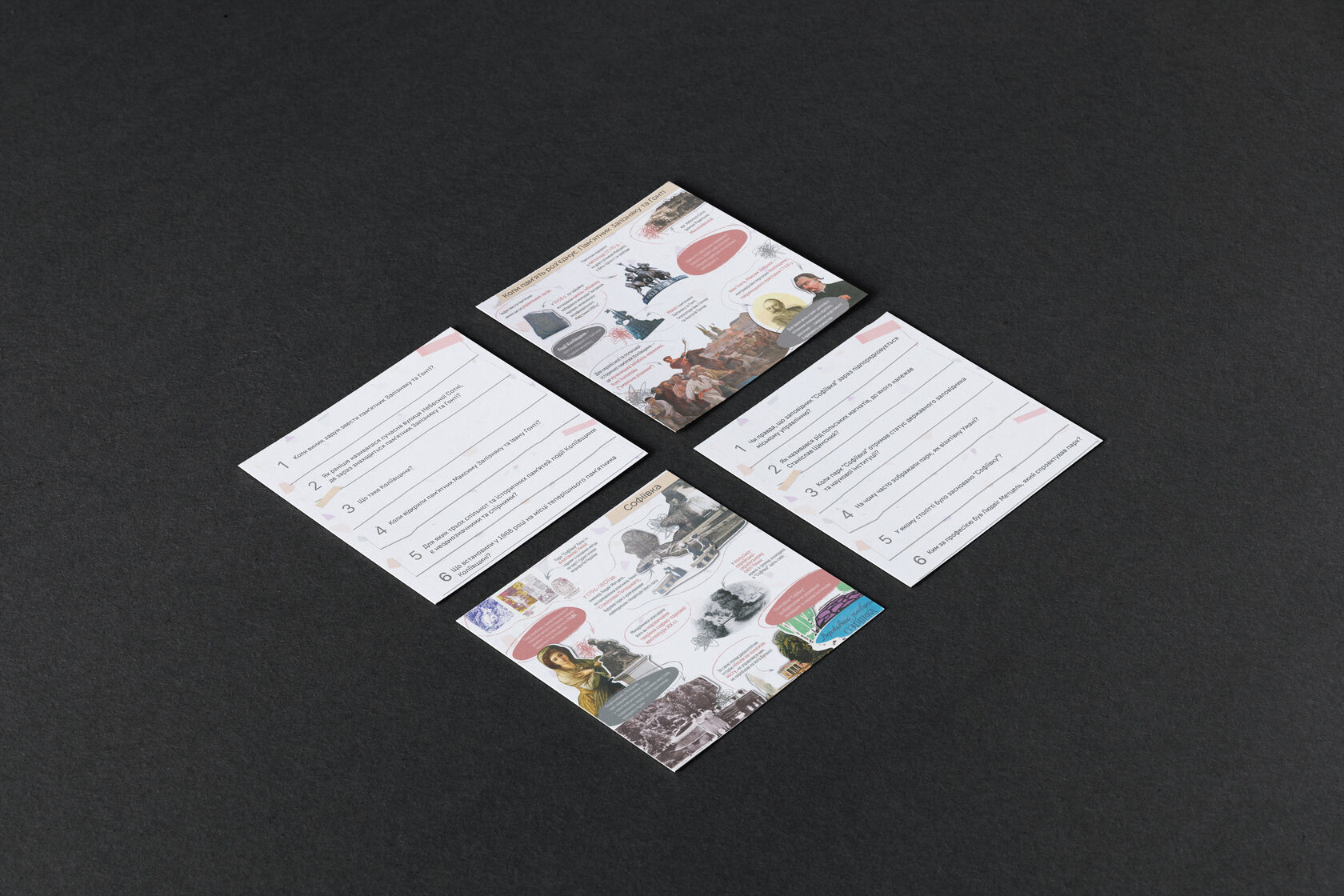 The educational game about the symbolic space of the city is a format and an opportunity to talk about heritage objects and stories from the past of the city, which often do not get into the history textbook or local history lesson curriculum. All objects are selected according to the concept of common (complex, unspoken, problematic) heritage. The game product contains cards with visual and factual information about individual places, spaces, objects of Uman and questions.