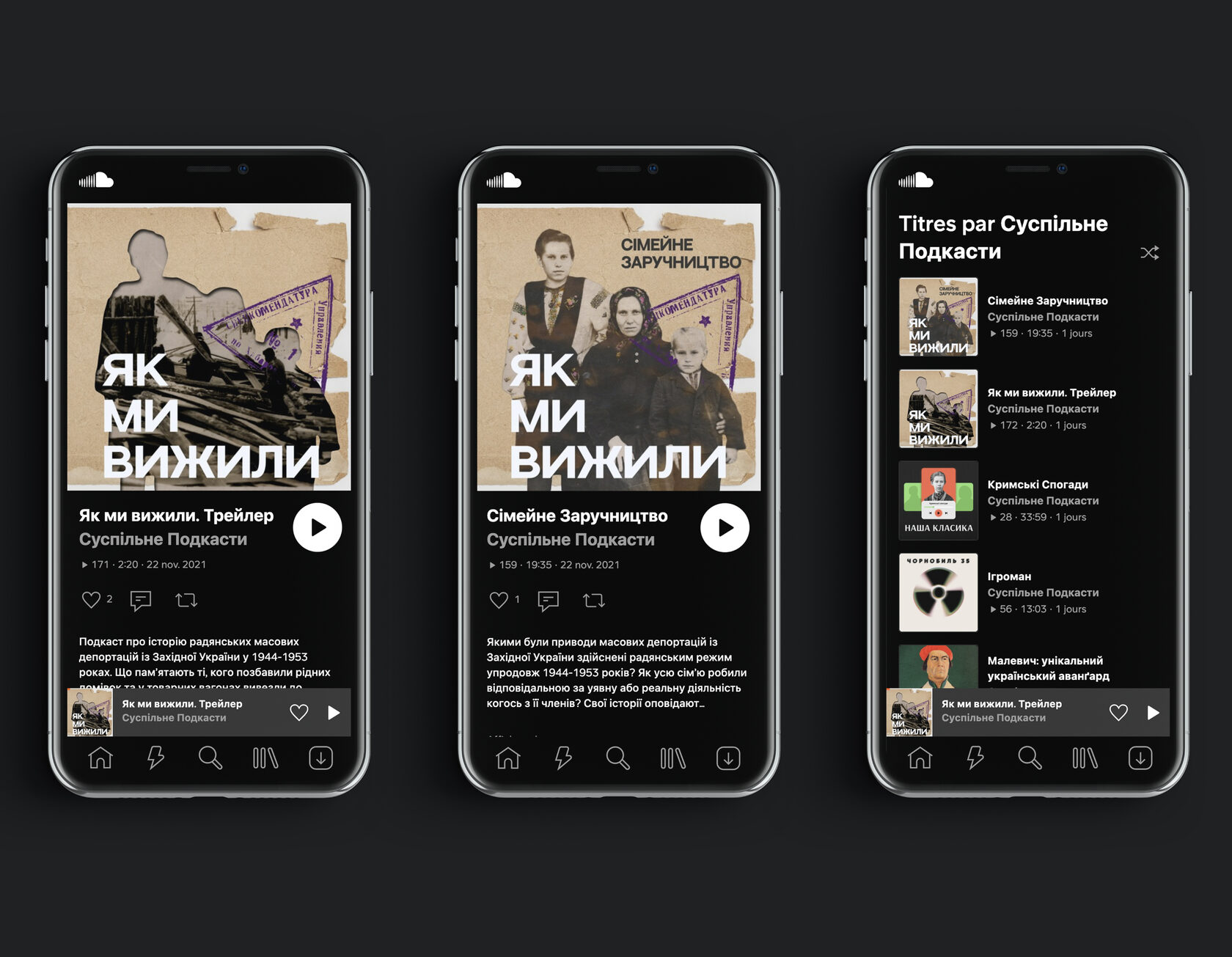 Design of a podcast cover art for Суспільне мовлення. Podcast on the history of Soviet mass deportations from Western Ukraine in 1944-1953 to Siberia, the Far East and Central Asia is created by After silence NGO.